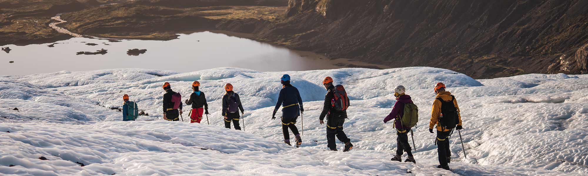 Venez vous promener sur le glacier avec nous! Nous vous promettons que vous vivrez une expérience inoubliable en explorant les paysages toujours changeant des glaciers islandais. Nous vous fournirons des crampons adaptés à la marche sur la glace ainsi que tout l'équipement nécessaire pour aprécier en toute sûreté votre randonnée glaciaire. Vous avez le choix entre des excursions à la journée, des combinaisons de plusieurs jours ou encore des circuits créés pour vous sur-mesure.