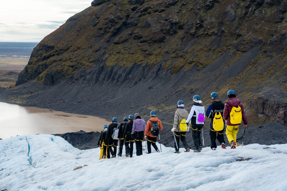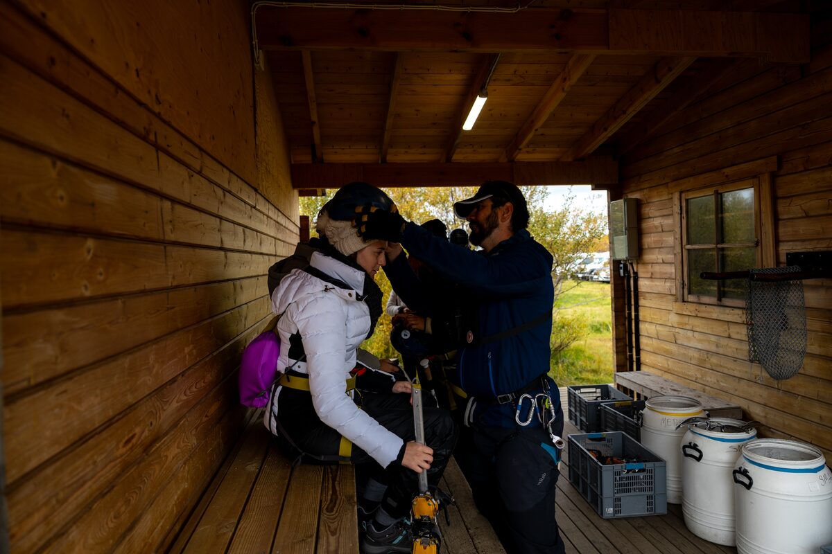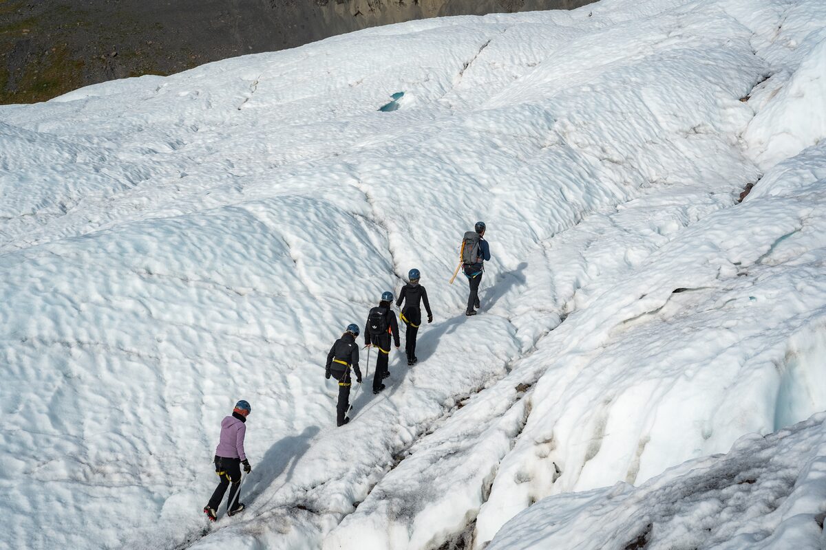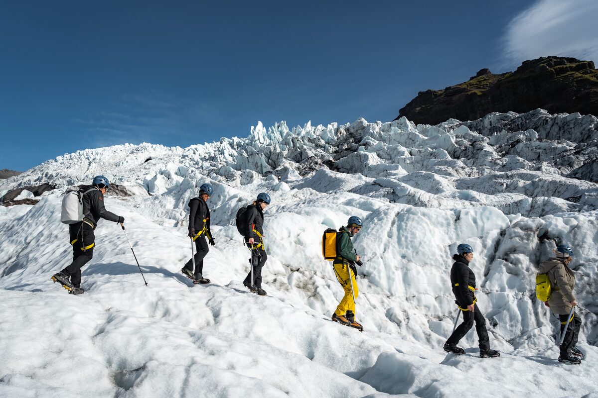 Une fois arrivés à Felljökull, nos aimables guides certifiés vous donneront toutes les informations de sureté nécessaires et vous initieront à tout l’équipement que vous allez utiliser. Nous vous fournirons tout l’équipement nécessaire pour Falljökull : piolets, crampons, casques et harnais. Votre sécurité est ce qui nous importe le plus et nos guides s’assureront que vous soyez toujours en sécurité sur la glace.
