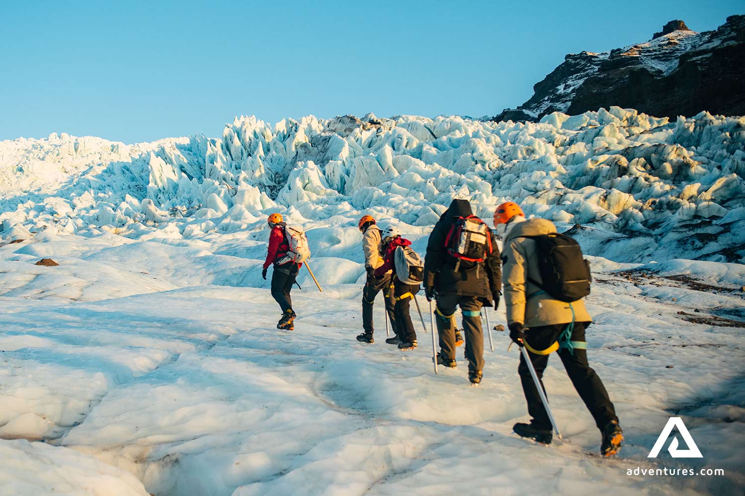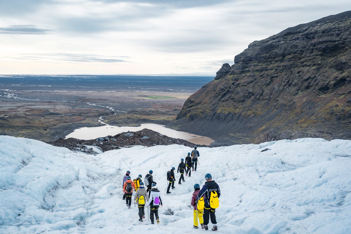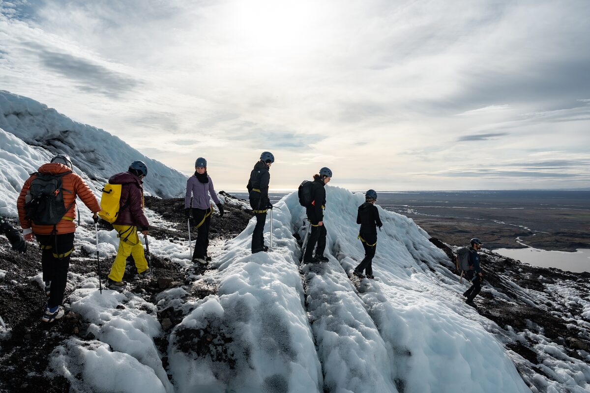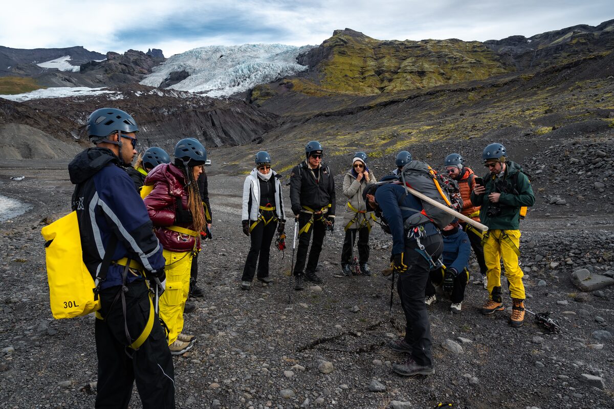Une fois arrivés à Felljökull, nos aimables guides certifiés vous donneront toutes les informations de sureté nécessaires et vous initieront à tout l’équipement que vous allez utiliser. Nous vous fournirons tout l’équipement nécessaire pour Falljökull : piolets, crampons, casques et harnais. Votre sécurité est ce qui nous importe le plus et nos guides s’assureront que vous soyez toujours en sécurité sur la glace.