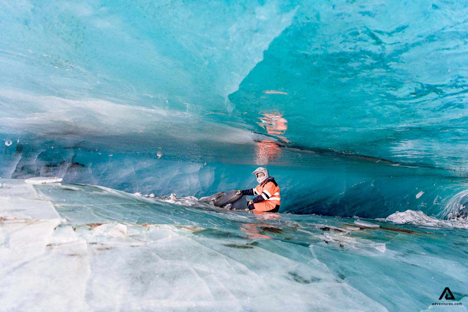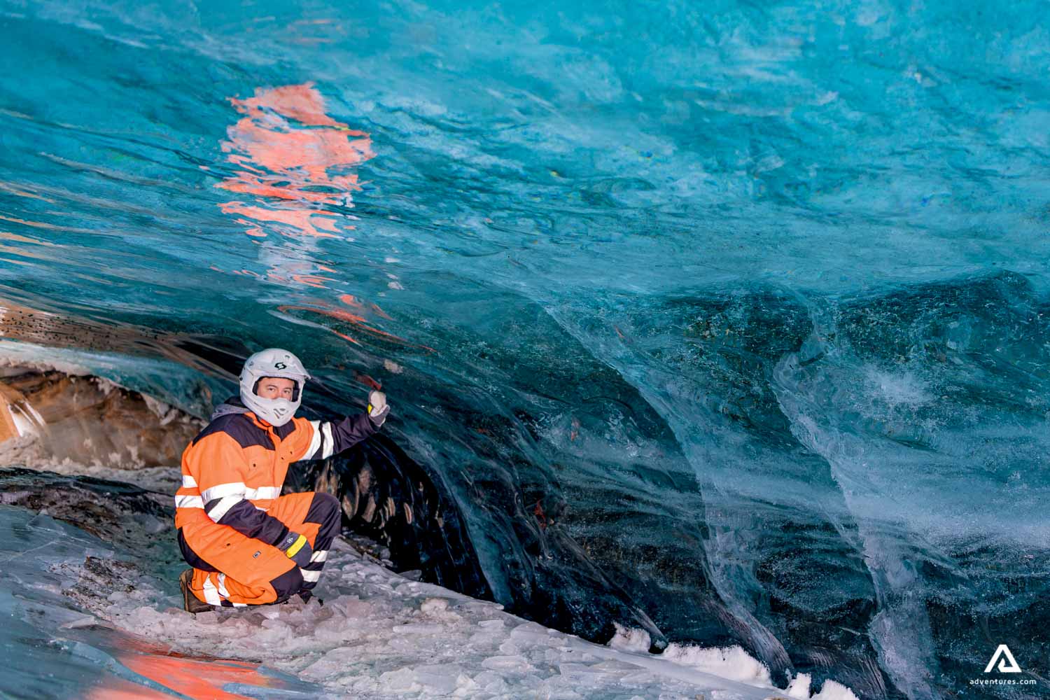 A mi-chemin, notre guide vous emmènera dans une grotte de glace naturelle majestueuse formée au cours de milliers d'années. Cela vous permettra d'avoir une toute nouvelle perspective sur les glaciers et ce sera l’occasion parfaite pour prendre quelques photos. Nous passerons environ 15 minutes à explorer la grotte, puis nous repartirons sur la neige, pour encore plus d'adrénaline. Une fois de retour à notre camp de base, nous reprendrons la route panoramique vers Gullfoss pour bien terminer la journée. Cette excursion est une combinaison imbattable : une nature incroyablement belle et beaucoup d’amusement dans la neige. Vous vous créerez des souvenirs pour la vie. Réservez dès aujourd’hui notre aventure de motoneige et d'exploration de grotte de glace. Faites-nous confiance, vous ne le regretterez pas!