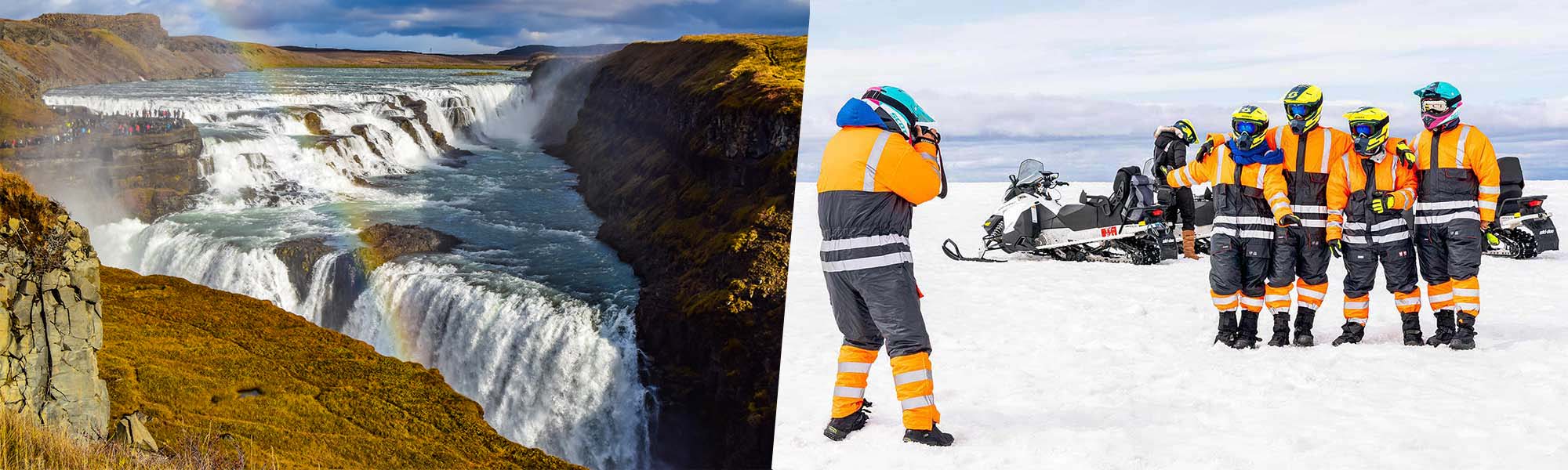 D’ici là, vous aurez probablement faim. Nous nous arrêterons donc au café/restaurant de Gullfoss avant de reprendre la route en direction du glacier Langjökull, où nous irons faire un tour en motoneige sur le deuxième plus grand glacier d’Islande. C’est le meilleur moyen de terminer la journée, alliant la beauté époustouflante du paysage unique et amusement sur la motoneige. Il est impossible de ne pas passer du bon temps à Langjökull. Après une journée incroyablement satisfaisante mais cependant fatigante, nous rentrerons à Reykjavik.