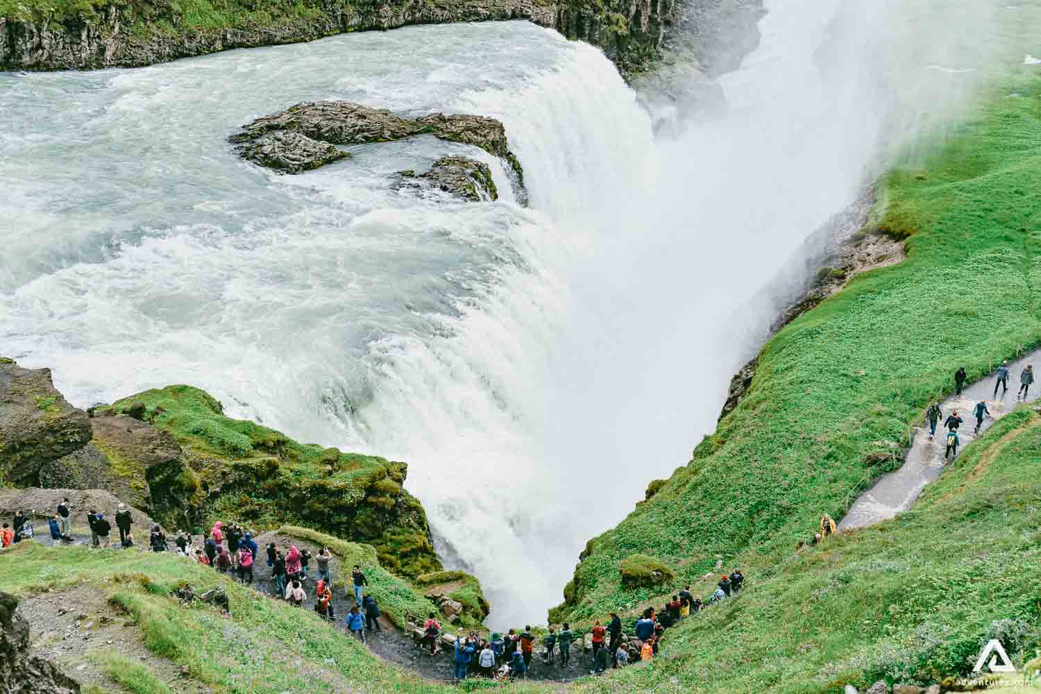 Après Geysir, nous irons à Gullfoss (la cascade d'or). Gullfoss est vraiment une merveille naturelle et c’est un endroit parfait pour prendre une magnifique photo en face des chutes. Si nous avons la chance de visiter Gullfoss par un jour ensoleillé, vous verrez alors l'eau virer en majestueuse couleur dorée et un arc-en-ciel se formera fort probablement au-dessus des chutes. La cascade de Gullfoss est vraiment spectaculaire et devrait figurer sur la « Bucket List » (liste des choses à faire dans notre vie) de chacun d’entre nous.