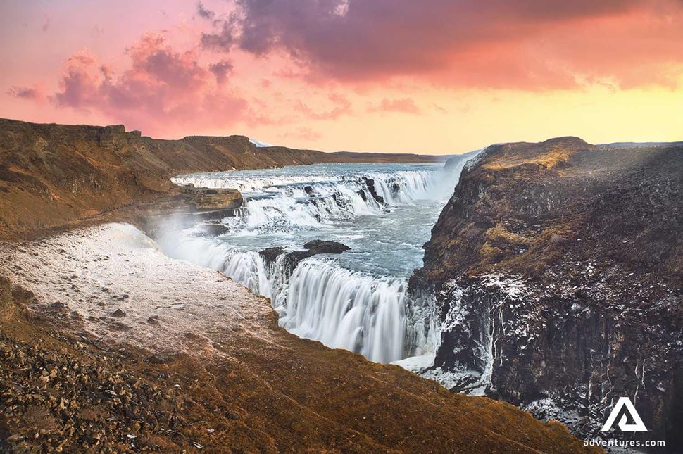 Nous conduirons ensuite en direction de la cascade de Gullfoss, la plus célèbre cascade d'Islande provenant de la rivière Hvita. Sa puissance est source d'inspiration et nous pouvons nous en tenir si près que nous pouvons sentir la brume sur nos vis...)