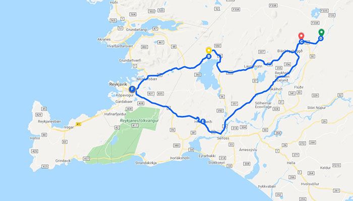 Nous visiterons les destinations les plus célèbres d’Islande en une après-midi en minibus : le parc national de Thingvellir, la cascade de Gullfoss et la zone géothermique de Geysir.