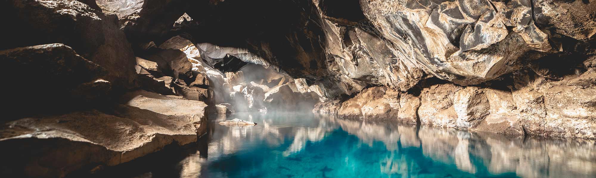 Lake inside the Grjótagjá Cave in Iceland
