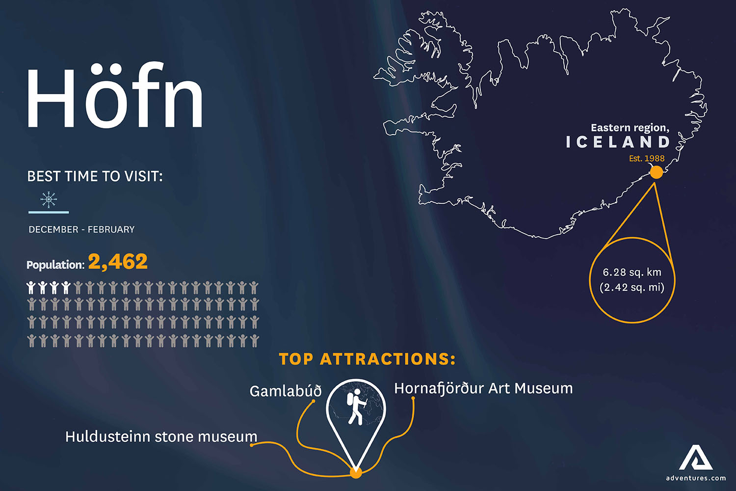 Top attractions: Hornafjörður Art Museum, Huldusteinn stone museum, Gamlabúð