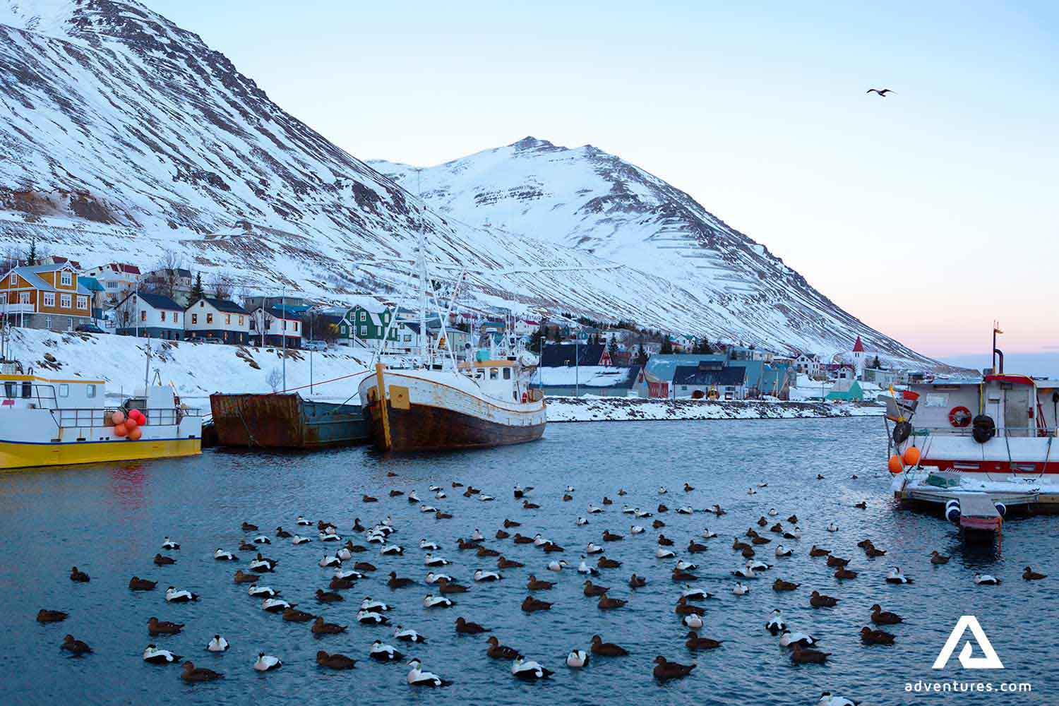 Siglufjordur, being in the northernmost corner of Iceland, receives heavy snowfall. The town looks pristine during the winter months. It provides the ideal backdrop to watch the Northern Lights illuminate the sky with myriad shades of purple, green, and red.