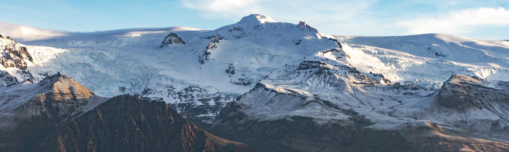 Hvannadalshnukur Mountain is situated adjacent to the Skaftafell Nature Reserve in the southern part of Vatnajokull National Park. Two routes lead to the top of it: Hryggjaleið and Sandfellsleið. Both of them are at the southern foothills of Öræfajökull Volcano and can be reached from the Skaftafell Information Center with a guide.