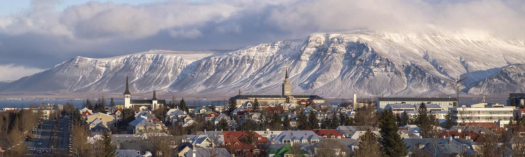 Reykjavik and Mount Esja during winter