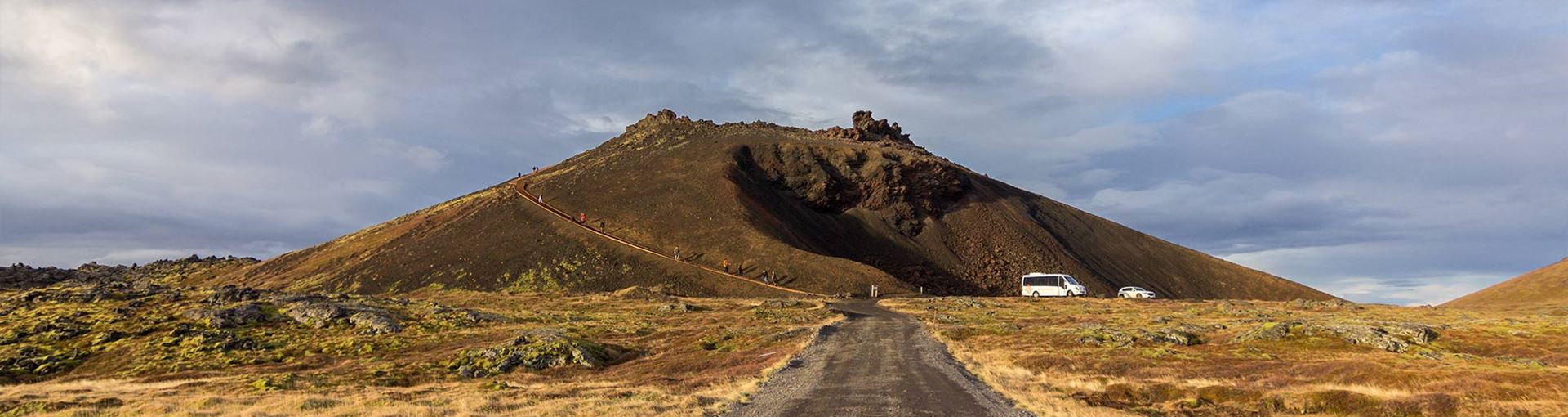 - Hike to the Crater Rim: Ascend the 100-meter (328-foot) high crater rim via a well-maintained path and a series of metal stairs. The hike is relatively easy and takes about 10-15 minutes. From there, you will relish the stunning views of the crater basin, the lava fields, the Snaefellsjökull Glacier, and the Atlantic Coast.
