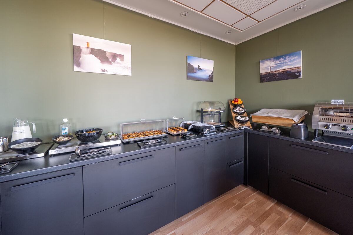 Adventure Hotel Hellissandur currently has 20 rooms available. Our rooms include made-up beds, towels, and private bathrooms with shower facilities. We provide complimentary WIFI in our hotel for all guests. Most of our rooms are twins, but we can accommodate triple or quad requests as well, based on availability. We have a spacious breakfast restaurant that opens every day all year from 7:30 till 9:30 AM and offers various selections of an excellent continental breakfast.