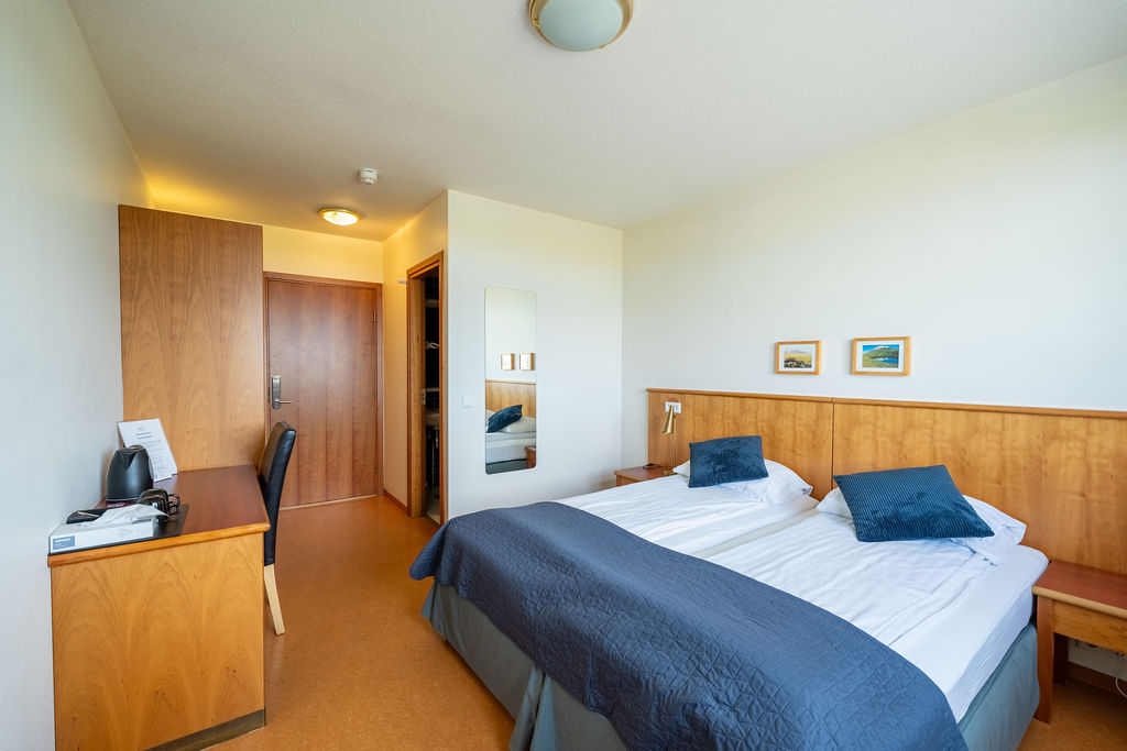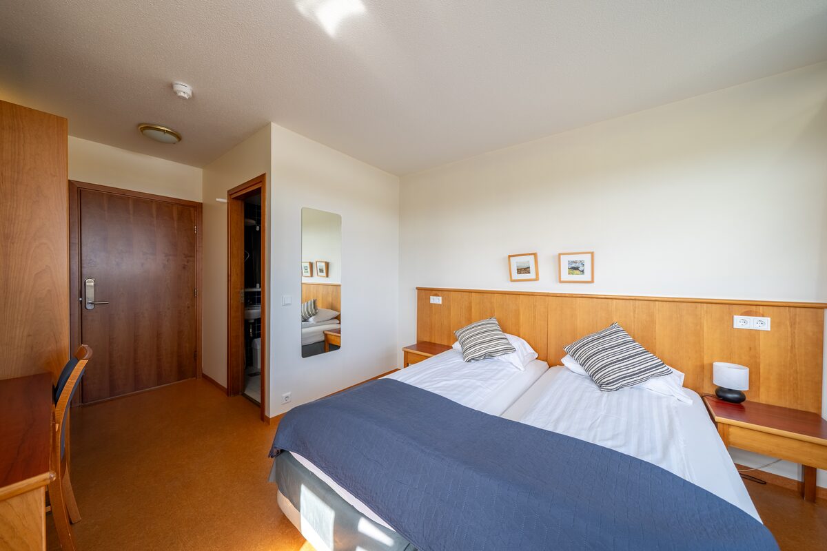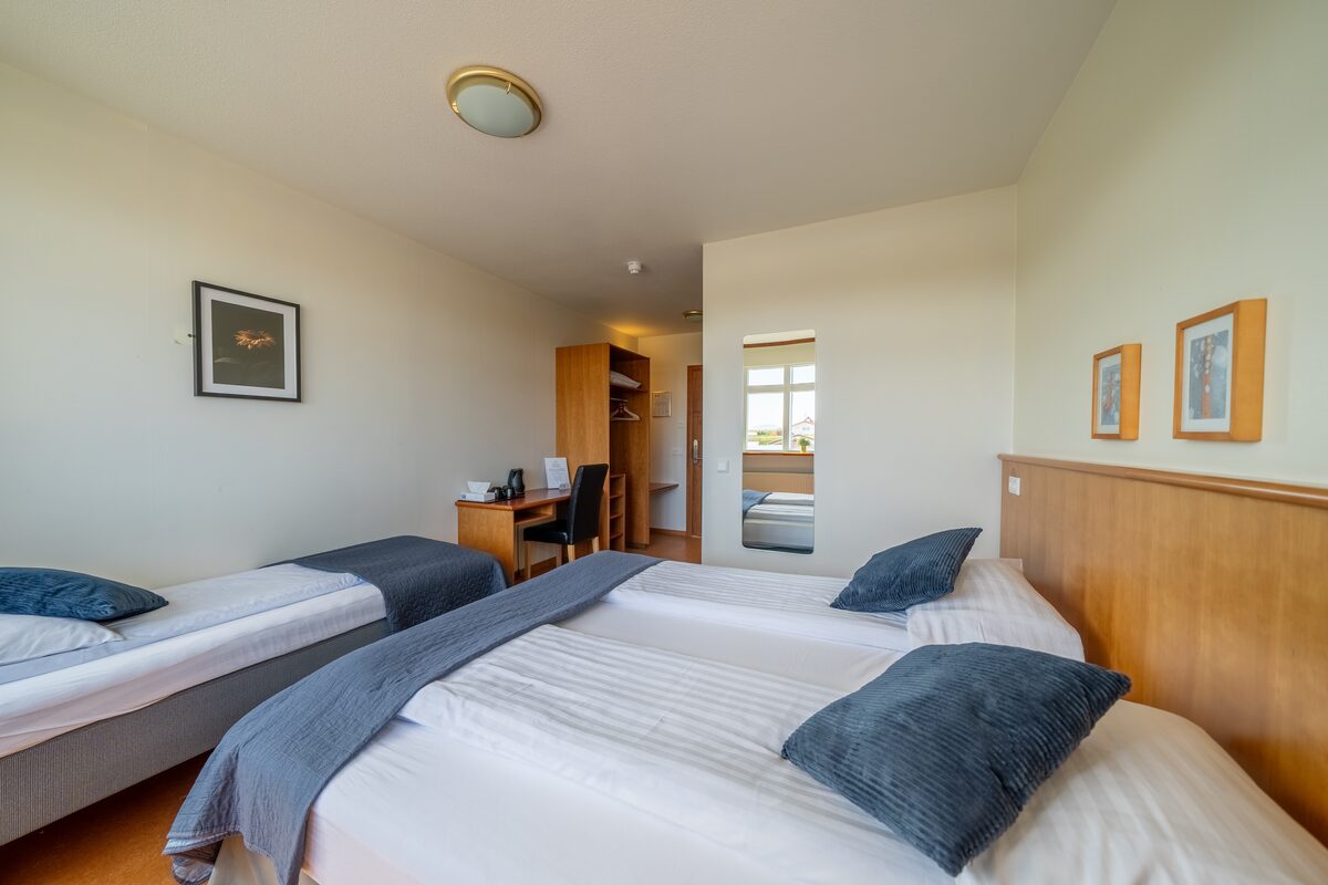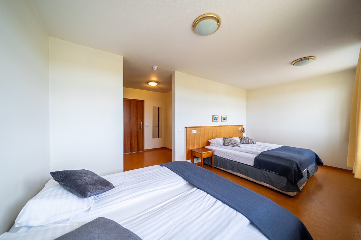 Adventure Hotel Hellissandur offers a total of 20 rooms on 2 floors, mainly with twin occupancy but also including several triple and a spacious family room for 4 guests. All rooms have private bathrooms with shower facilities. Our spacious breakfast room provides excellent service for all travelers and may accommodate smaller groups as well. We also offer complimentary WIFI in each room and common areas of the hotel. Our main building has an elevator which makes easy access to the guestrooms.