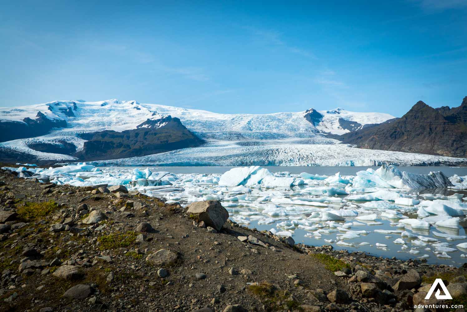 Fjallsarlon is a picturesque glacier lagoon near the Vatnajokull Glacier, only 10 km (6 mi) west of the Jokulsarlon Glacier Lagoon. Even though it attracts way fewer visitors than Jokulsarlon, this glacier lake is no less worth a visit. This glacier lagoon is "hidden" in an unexpected place. Coming from the parking lot, you'll soon be climbing on the hill, after which amazing views of floating icebergs and Fjallsjokull Glacier awaits you. Be sure not to miss this spectacular glacier lagoon when traveling in the area!