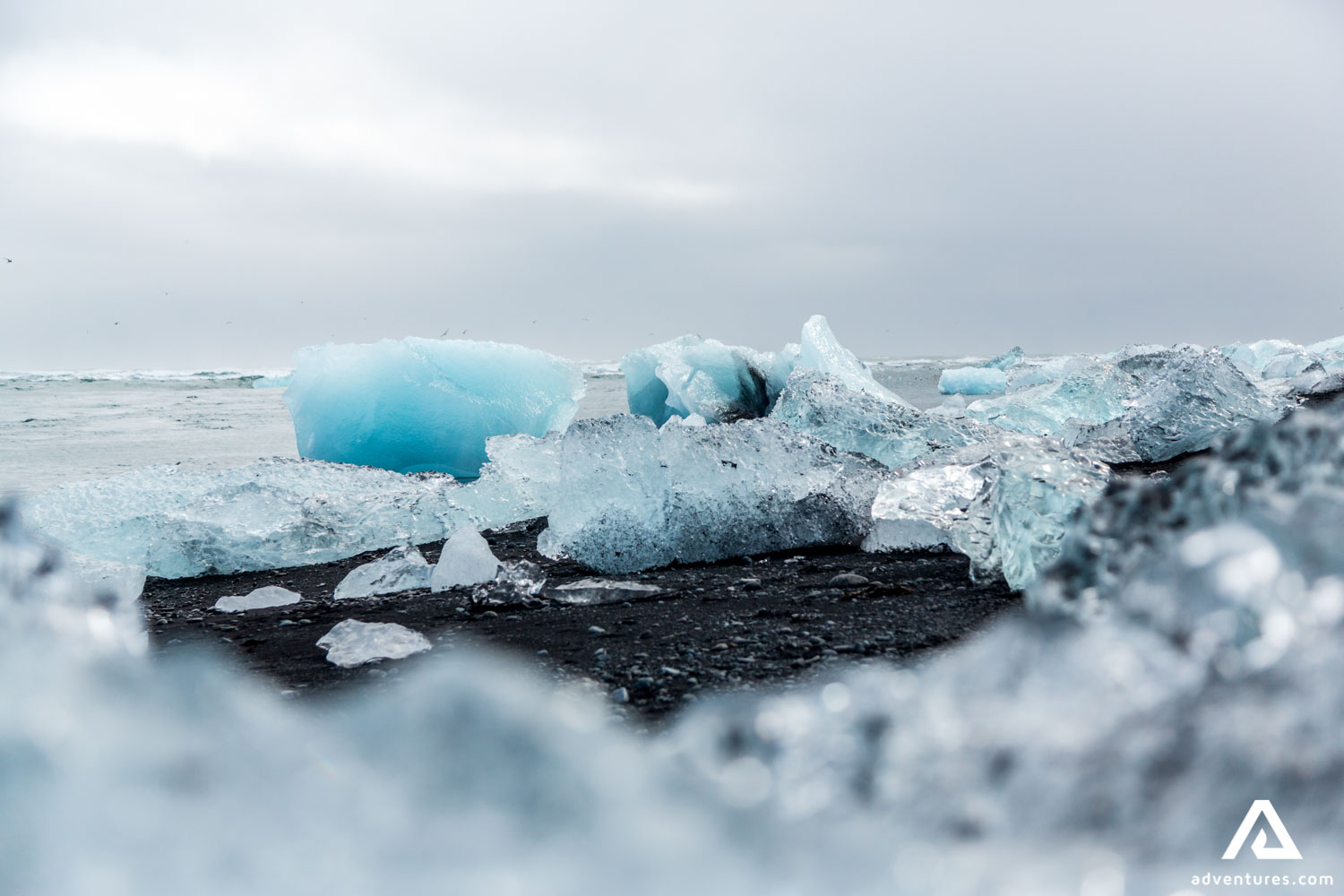 Some of the icebergs from the Jokulsarlon glacier lagoon don't reach the ocean and end up at Diamond Beach. This black sand beach is located only minutes away from the lagoon. The crystal clear icebergs lying on the beach create a beautiful contrast with volcanic ash sand. This place is beloved by nature lovers and photographers alike.