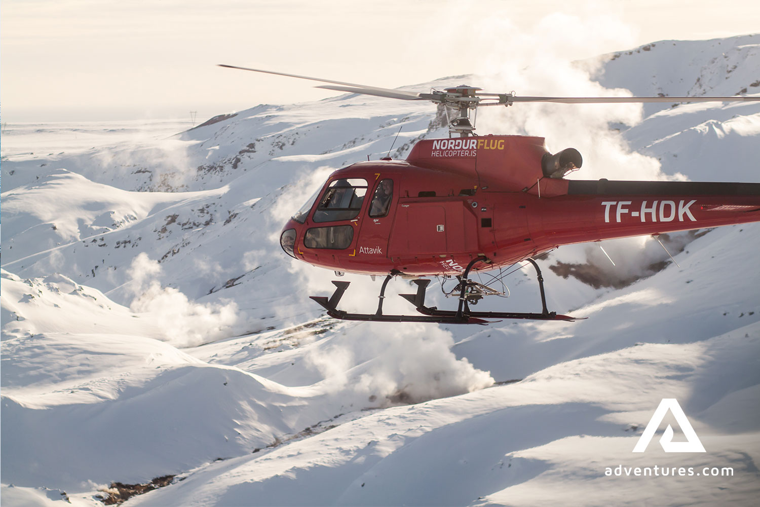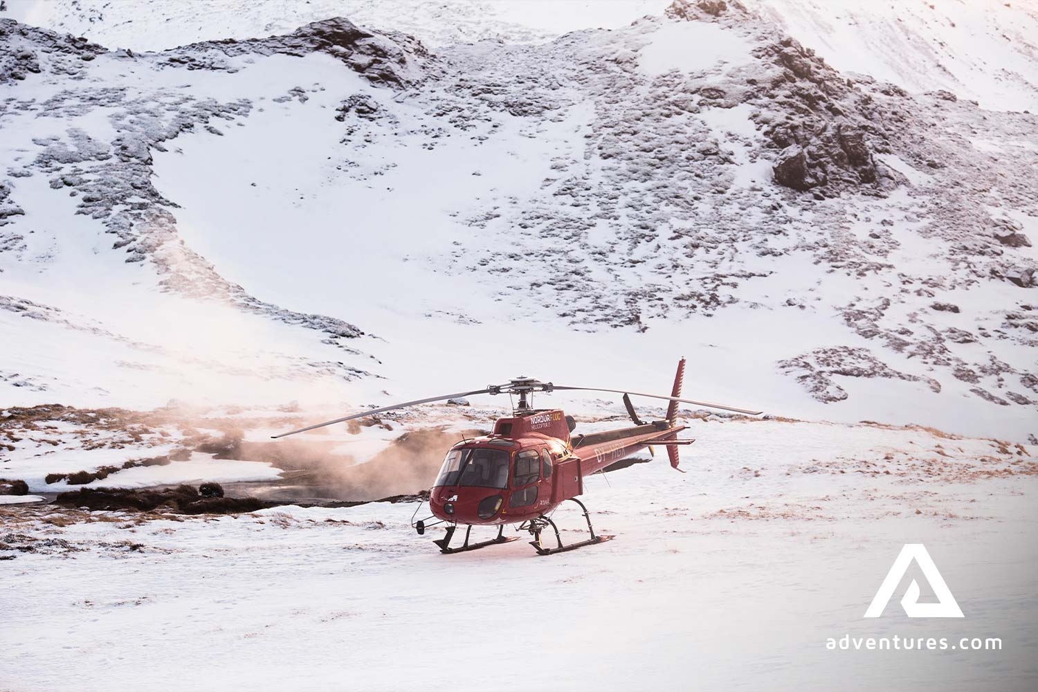 The total duration of this tour is approximately between 100 and 130 minutes. It includes a 60-80 minute guided helicopter flight, a 15-minute walk on a glacier, and a 15-minute landing in the remote geothermal area.