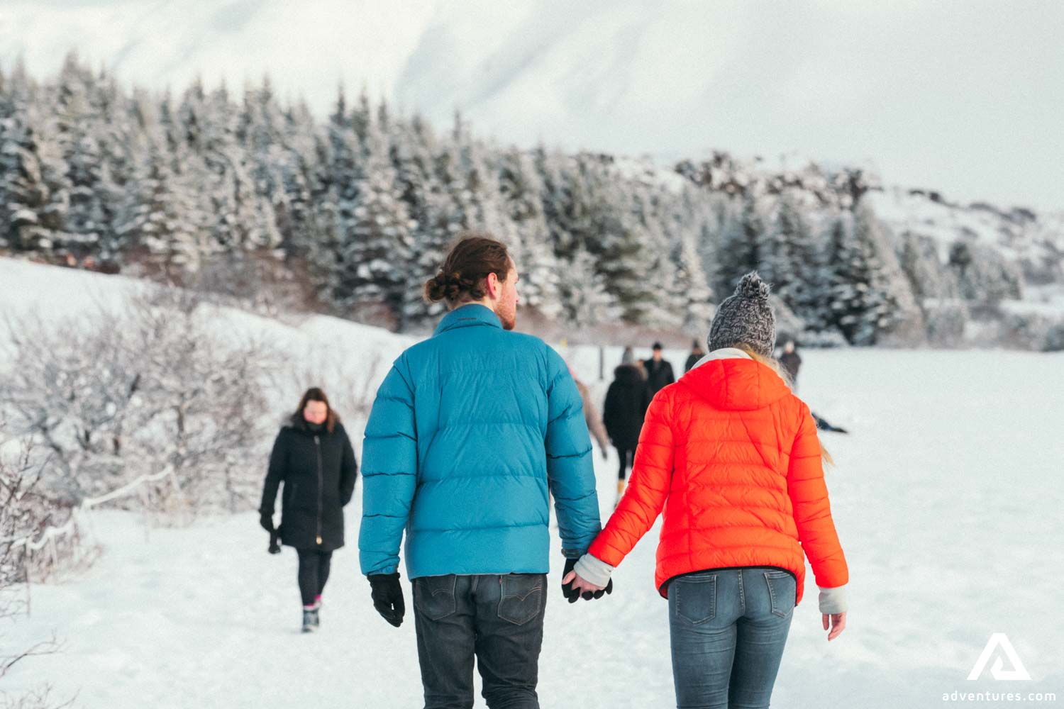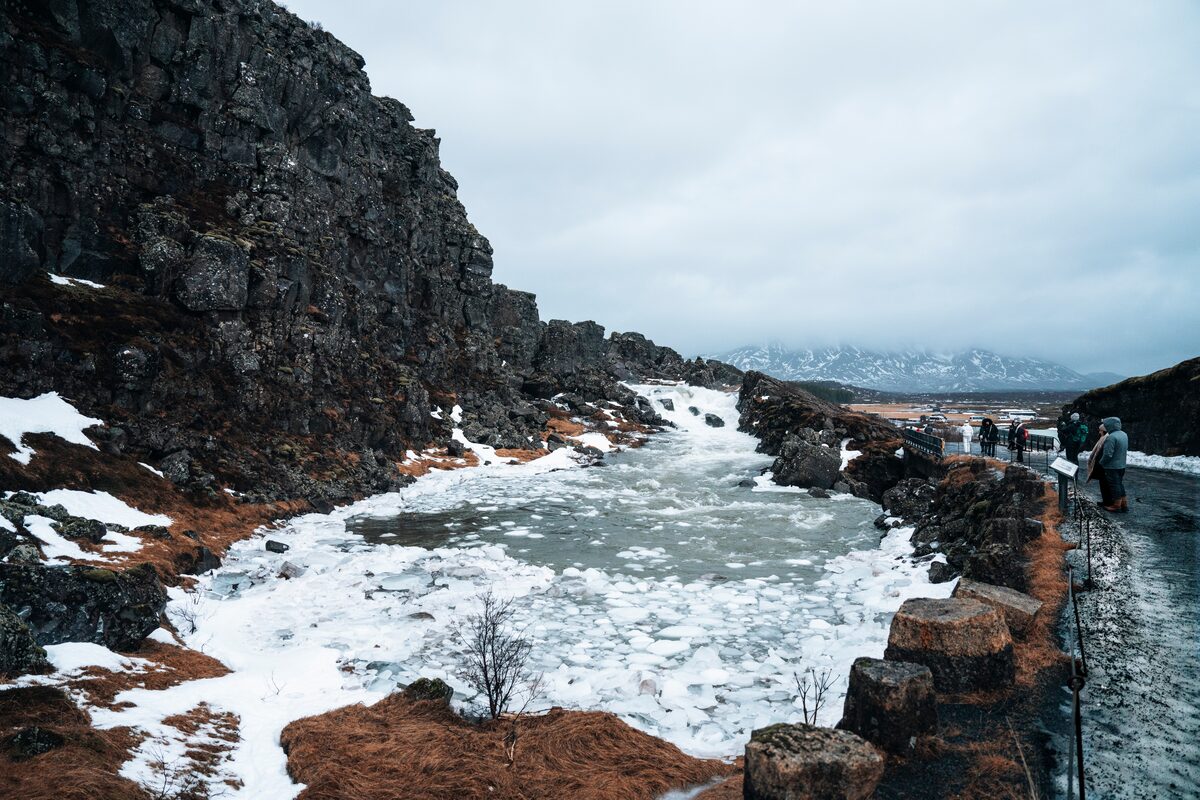 To begin the Golden Circle route, we start our tour with a visit to the Thingvellir National Park. The area holds great historical importance and has many remarkable geological features. The Eurasian and American tectonic plates meet here, and Althingi (the Icelandic parliament) was formed on these rocks in 930 AD, making it the oldest parliamentary site in the world. The beautiful Thingvellir is designated as a UNESCO World Heritage Site.