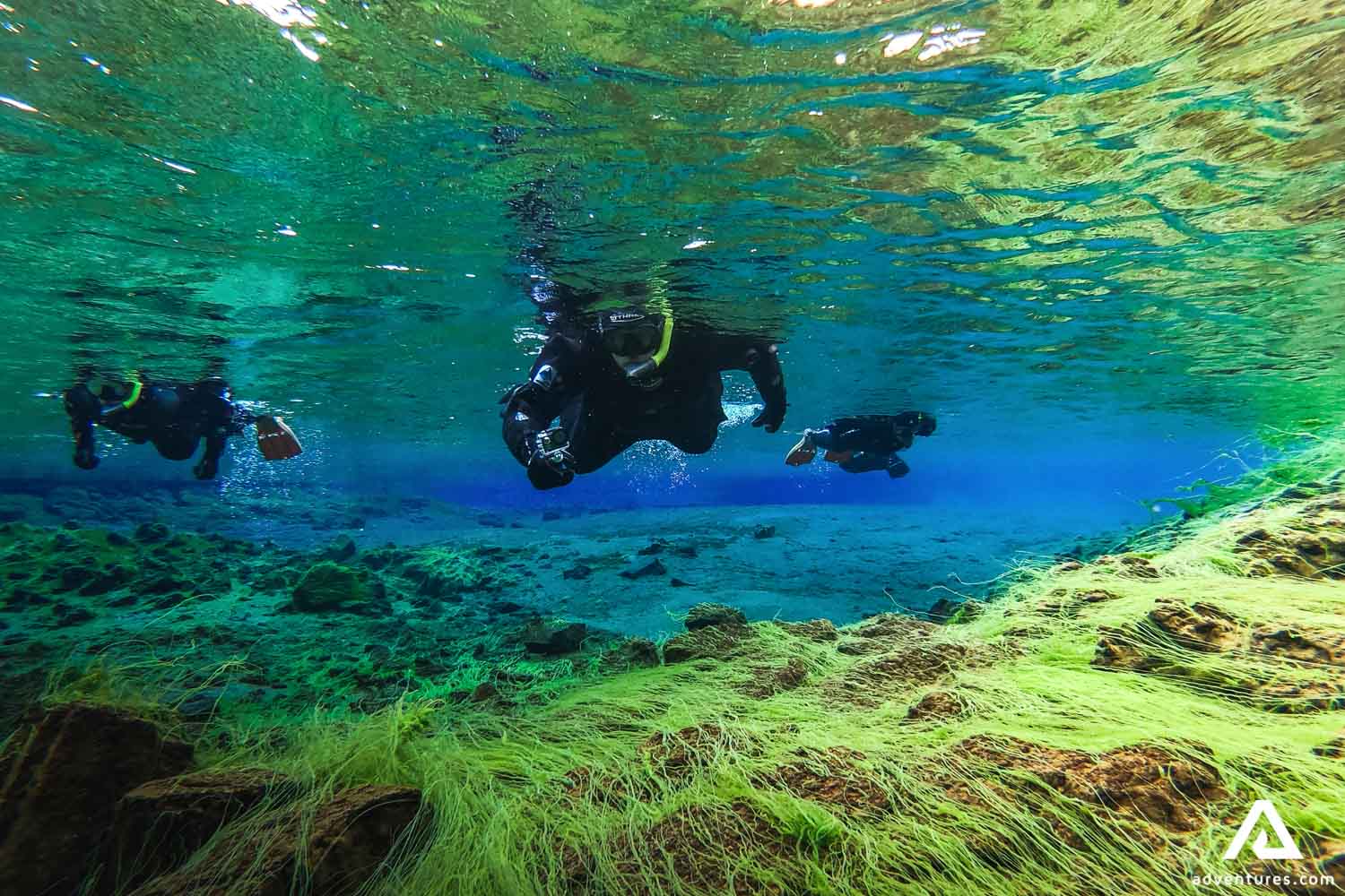 Silfra can be up to 60m deep. However, when you’re diving in Silfra than you will go about 7 to 12m deep, and the maximum diving depth that is permitted is 18m.
