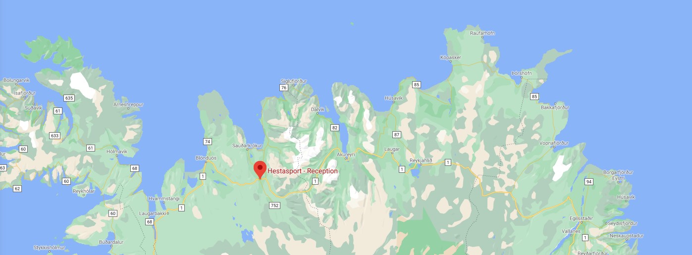 Meet us at our farm near Varmahlid village in North Iceland. It’s the white and blue painted building just about the cross road between road number one, and road 752. Labelled Hestasport.
