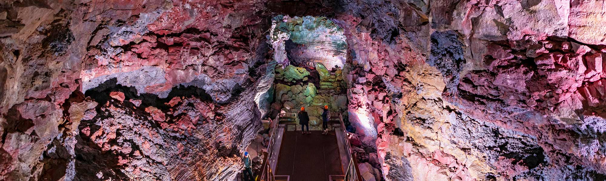 Spenastofuhellir lava tube is around 200 metres long and it has some fantastic lava flow formations such as stalactites. Volundarhusid Cave (e. The Labyrinth) is only 100 metres south of Spenastofuhellir lava tube. Volundarhusid lava tube is also 200 metres long and has 6 entrances and it forks in every imaginable way just like a labyrinth. It is a colourful lava tube with great lava formations that are very pleasing to the eye.