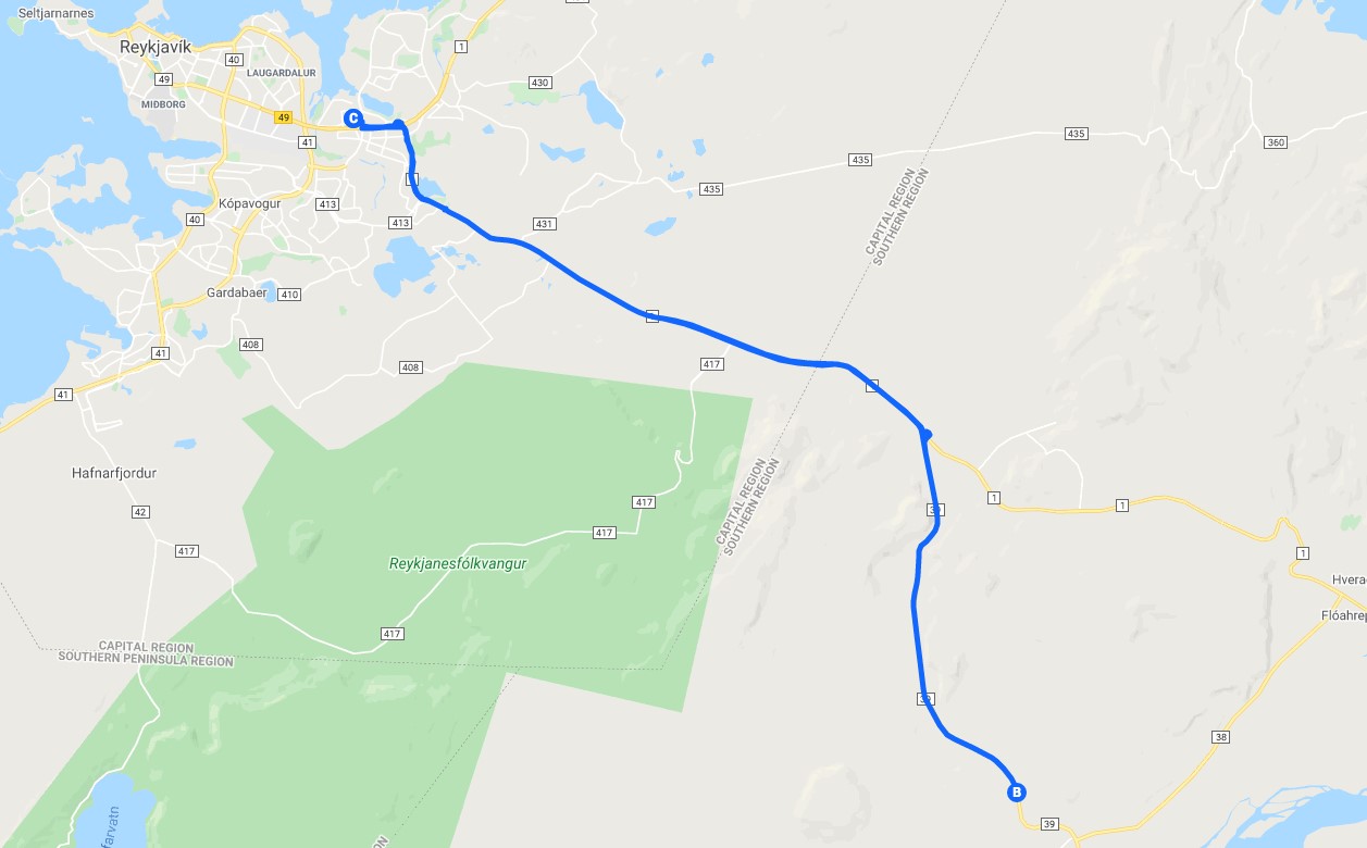 The tunnel is located less than 30 minutes drive (approximately 30 km) from Reykjavík, Iceland and accessible by all vehicles. Driving from Reykjavík east on Route 1 and drive for about 18 km. Turn right onto Route 39 (Þorlákshöfn) and drive for another 12 km. The parking area will be on your left-hand side. Click here for a Google Map. The GPS coordinates are: N.63º 56.407 / W. 021º 23.742.