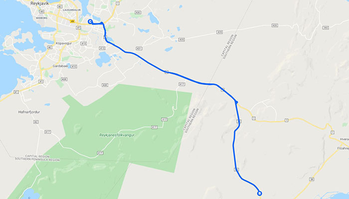 Have a car? You can meet us on site. The tunnel is located less than 30 minutes drive (approximately 30 km) from Reykjavík, Iceland and is accessible by all vehicles. Driving from Reykjavík east on Route 1 and driving for about 18 km. Turn right onto Route 39 (Þorlákshöfn) and drive for another 12 km. The parking area will be on your left-hand side. Click here for a Google Map.