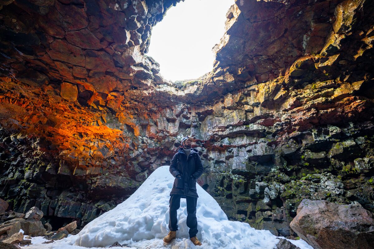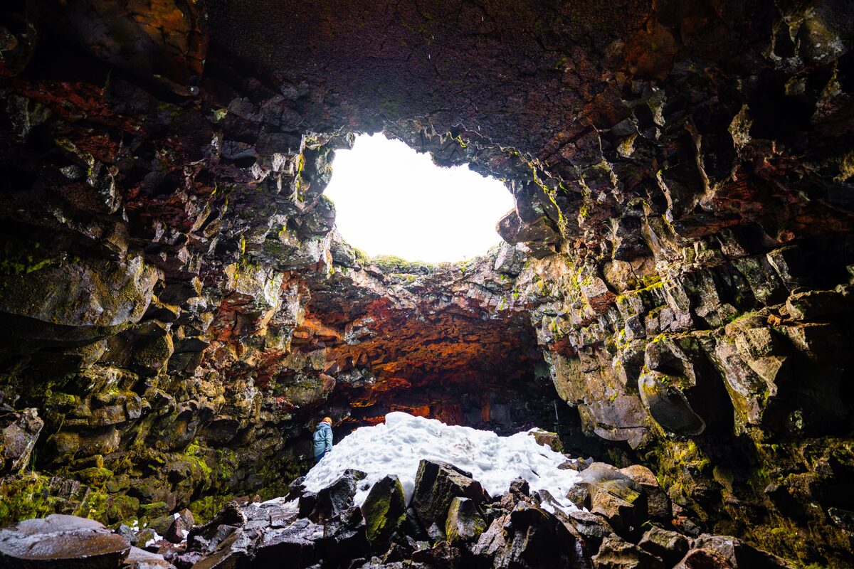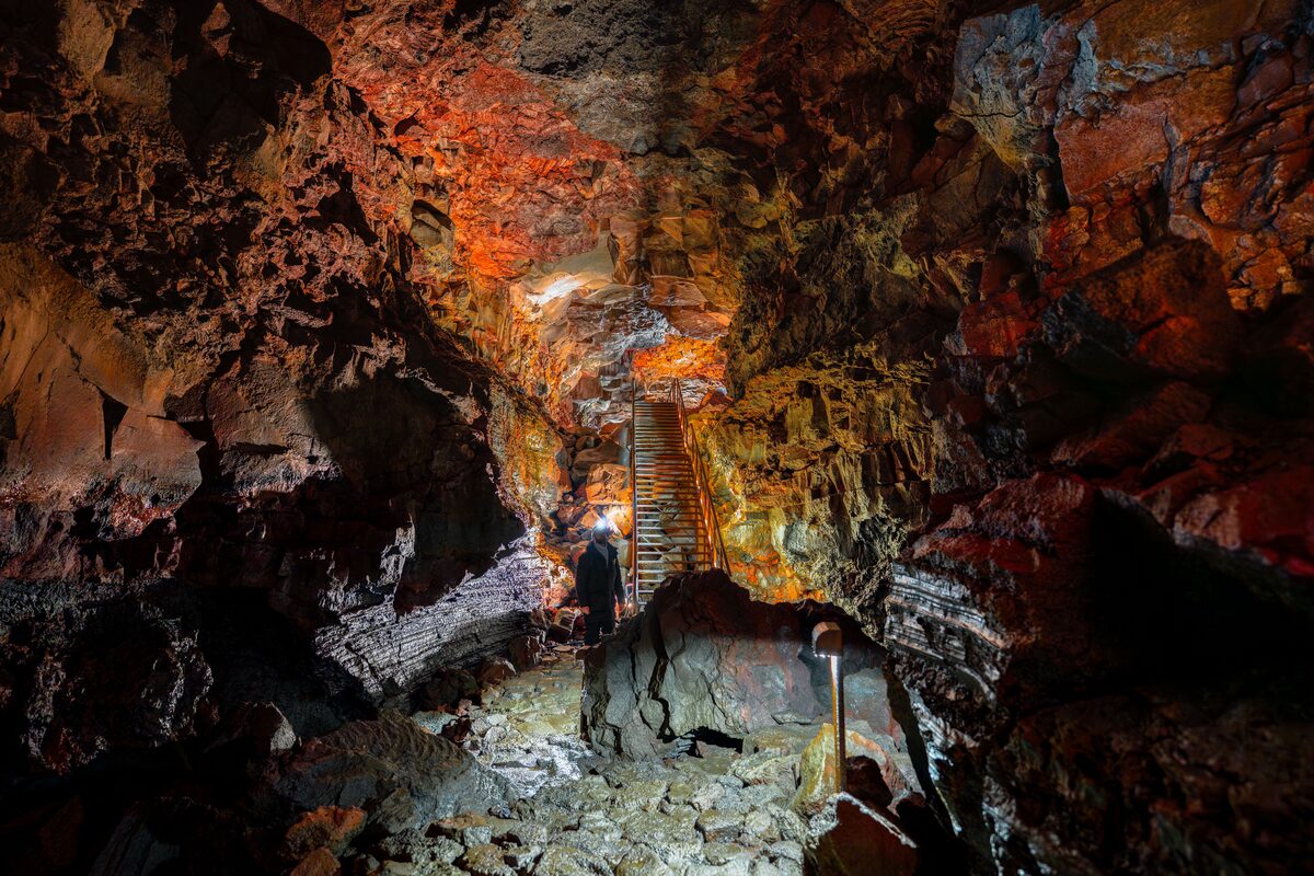 Your adventure begins with a pick-up from Reykjavík at 8:00 AM. Once you and your fellow travelers are in the bus, you’ll head on to Raufarhólshellir, one of Iceland’s longest and most accessible lava tunnels. Stretching an impressive 1,360 meters (4,461 feet), this vast underground passage provides an easy and comfortable walk through a spectacular volcanic world.