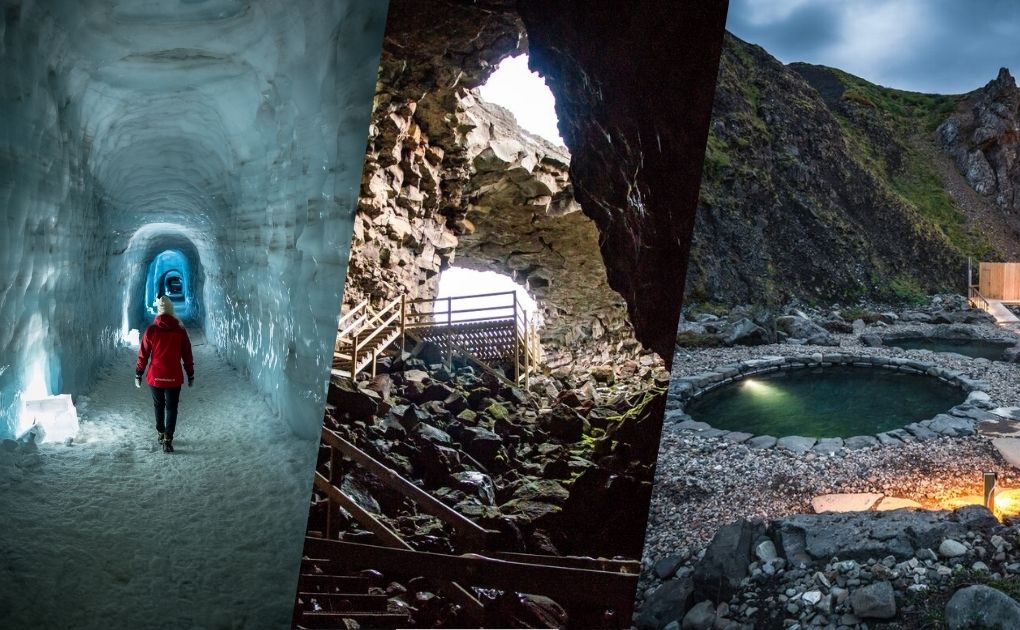 Your booked tour includes one of the following activities: Langjökull Ice Tunnel, Viðgelmir Lava Cave, or Húsafell Canyon Baths. It is not possible to experience all three on this tour.