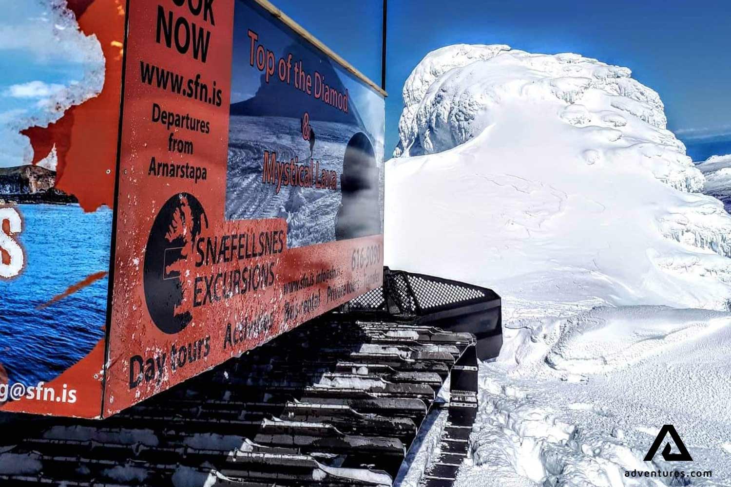 On your way to the peak of Snaefellsjökull Glacier, discover the universe of “Journey to the Center of the Earth” by the French author Jules Verne. Indeed, Snaefellsjökull is the entrance of the subterranean journey in the world known novel. When the snowcat successfully made it to the summit, you will be able to go on the glacier during a short break to admire the amazing panoramic view. Don’t forget to take pictures of this unforgettable moment on top of a glacier. From there, you can see the Snæfellsnes Peninsula, Snæfellsjökull National Park and if the visibility is clear, you can see up North to the Westfjords and South to Keflavík.