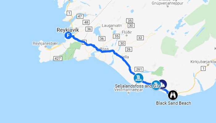 Eventually, we’ll pass several major volcanoes such as Hekla and Eyjafjallajökull, which are some of the largest active volcanoes in Iceland! On clear days, we’ll have a view of the archipelago of the Westman Islands rising steeply out of the ocean, just off the coast.