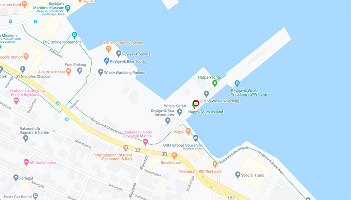 The meeting location is at the Old Harbor in the downtown area, at Special Tours Ticket Office, located at Ægisgarður 13, 101 Reykjavík. While we sail out to the open sea, you'll get a short introduction.