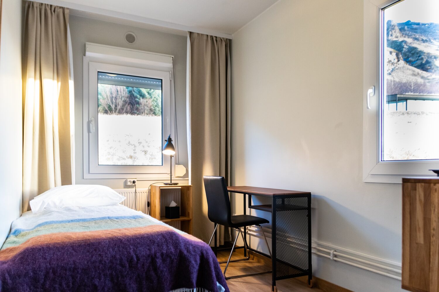 Next, we visit Reynisfjara, a striking black sand beach framed by basalt cliffs, sea stacks, and crashing Atlantic waves. Stay back from the shoreline here—powerful sneaker waves are common. Along the way, we’ll also pass the coastal village of Vík before reaching our countryside hotel for the night.
