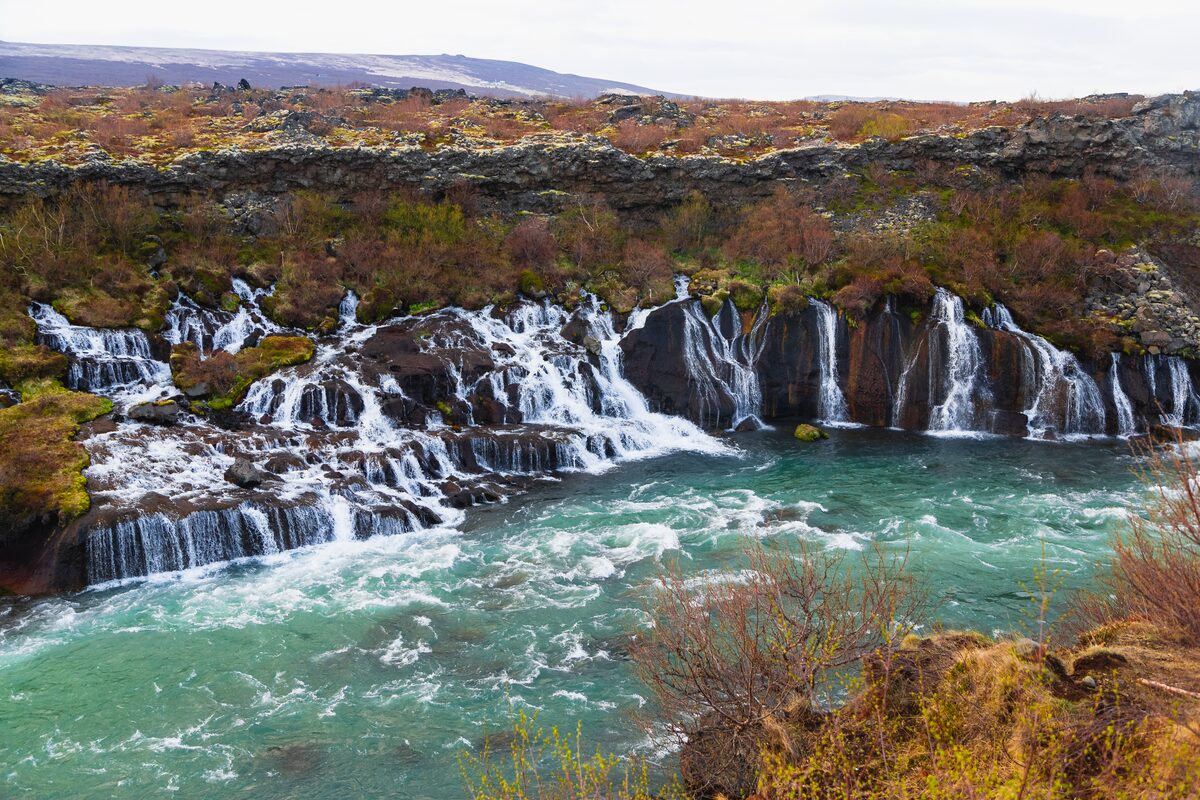 Afterward, we’ll chase waterfalls! At Barnafoss, your guide will share the dramatic local tale that gave these rapids their name. Nearby, the elegant Hraunfossar pours in thousands of threads from beneath a lava field, flowing with glacier water from Langjökull, Iceland’s second-largest glacier.
