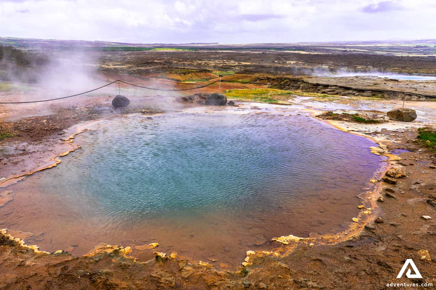 Geysir Geothermal Area is home to Strokkur, Iceland's most active hot spring. This hot spring, called the famous Geysir's "little brother," erupts the boiling water every 5 to 10 minutes!