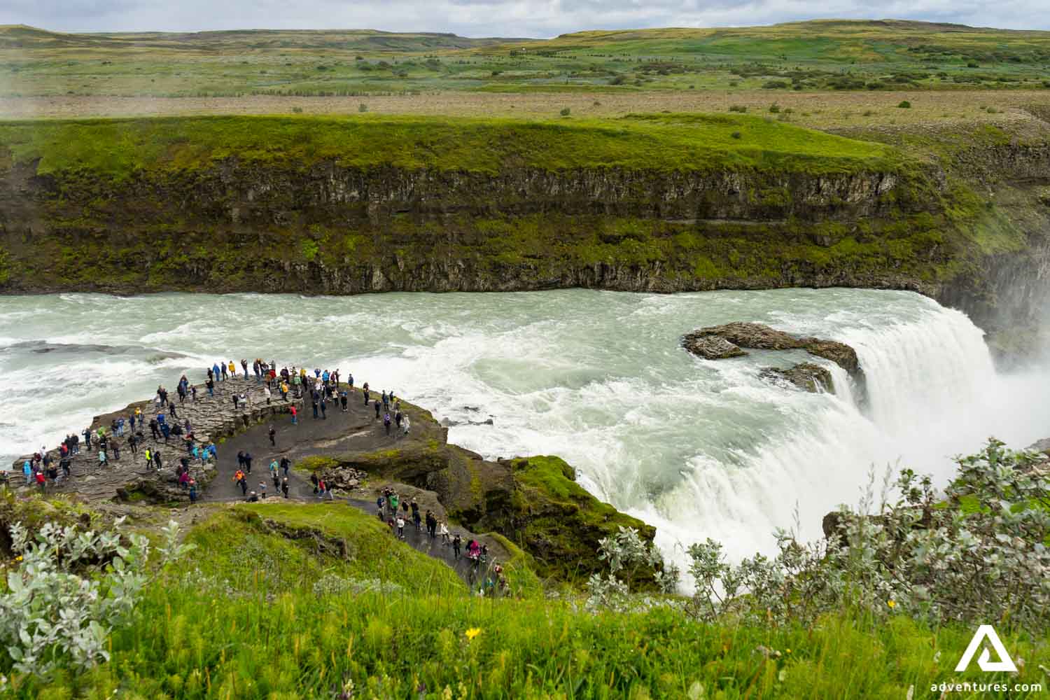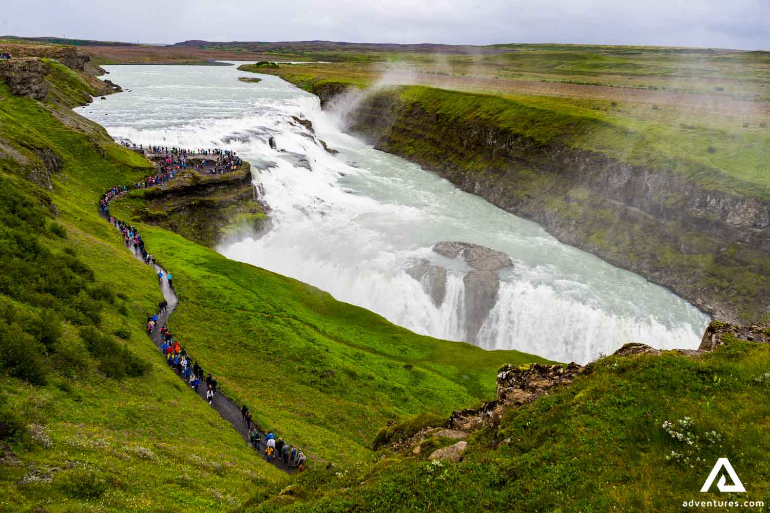 Next on our route is Gullfoss, or Golden Falls in English. This is probably the most iconic and most visited waterfall in Iceland. The water from the Hvita river falls in two stages, creating a beautiful and mighty cascade.
