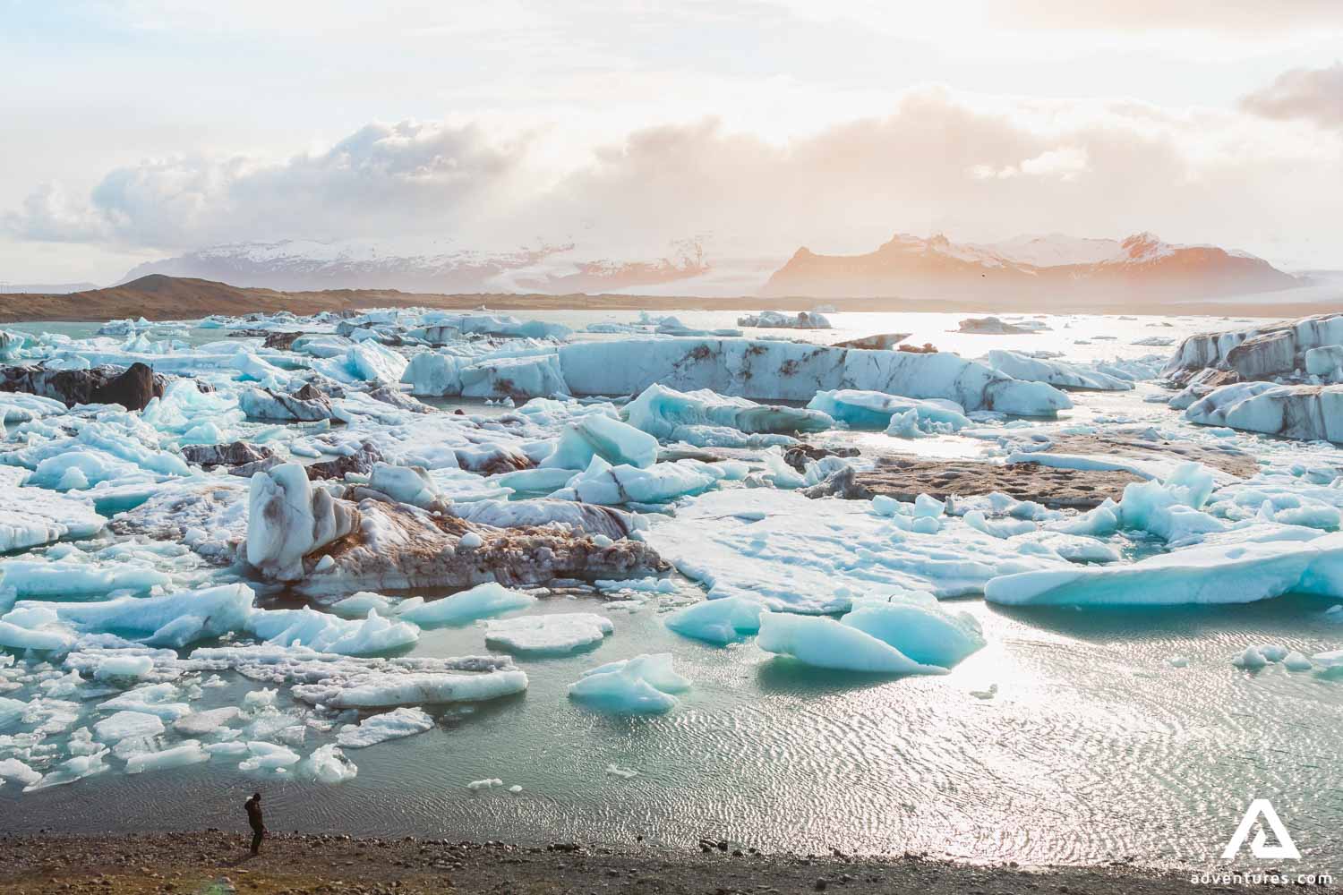 We'll start our day with a nutritious breakfast and then head towards the famous Jökulsárlón Glacier Lagoon and Diamond Beach nearby. The lagoon is full of floating icebergs of various sizes and shapes. The icebergs are drifting toward the Atlantic ocean. Some ice crystals are washed into the Diamond Beach, creating a beautiful contrast with the black sand.