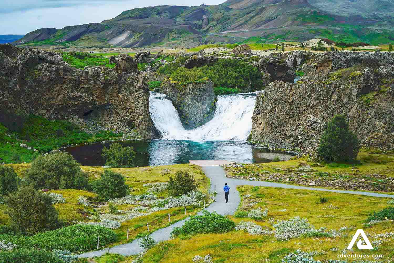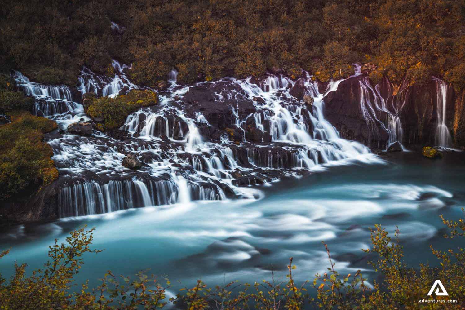 As we move on, out next stop will be the unique Lava Falls. The waterfalls of Hraunfossar are very special as its countless creeks and cascades stream out of the ground. A waterfall without a river over it is quite a rare natural phenomenon! The water continues appearing from the ground for a distance of about 0.55 mi. (900 m). It is an extraordinary sight, making it one of the most beloved waterfalls of those who visit it.