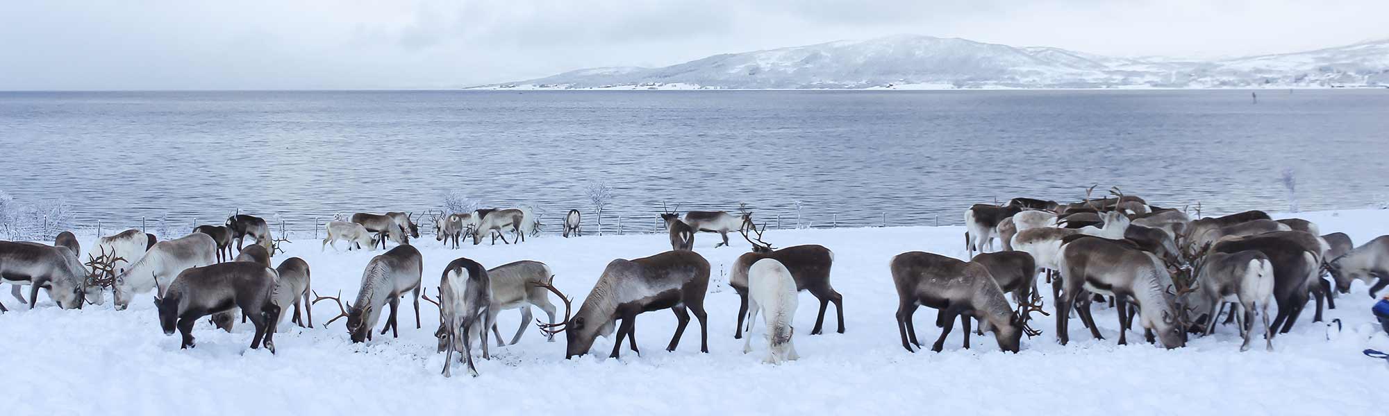 From the city center, enjoy a short seaside drive to the reindeer and their sleds.