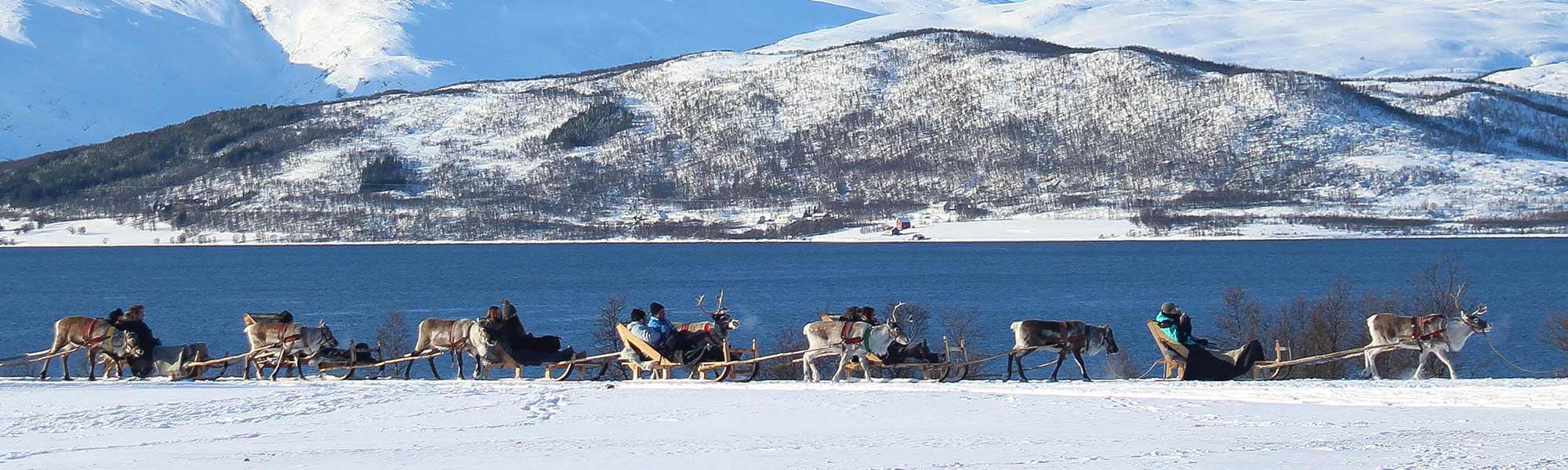 Enjoy a 10 to 15-minute sleigh ride as the reindeer guide you around the valley and along the coast. Afterwards, you will have the opportunity to feed 300 of these magnificent animals before entering the gamme for a hot traditional meal cooked over the fire. Finish the day by gathering around the fire to listen to Sami history, stories and joiking (songs)